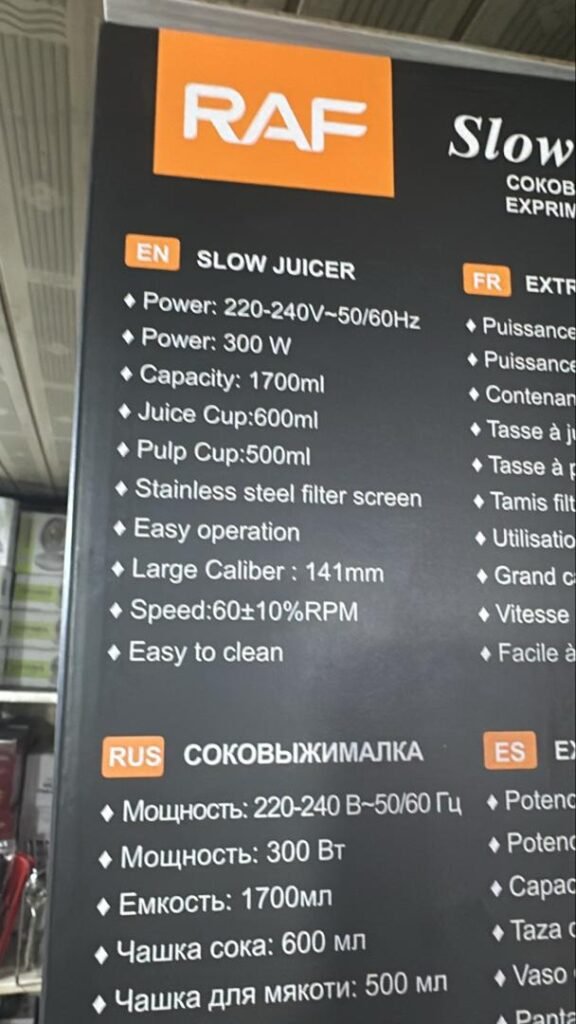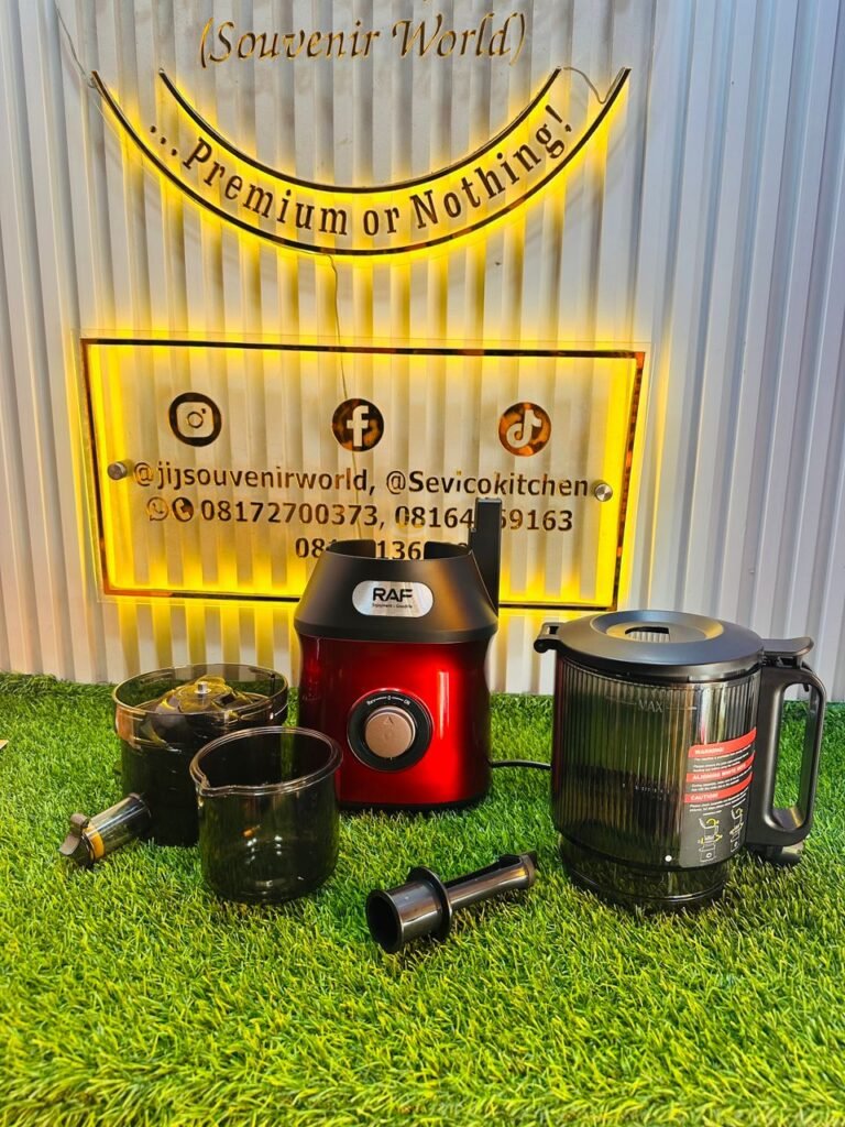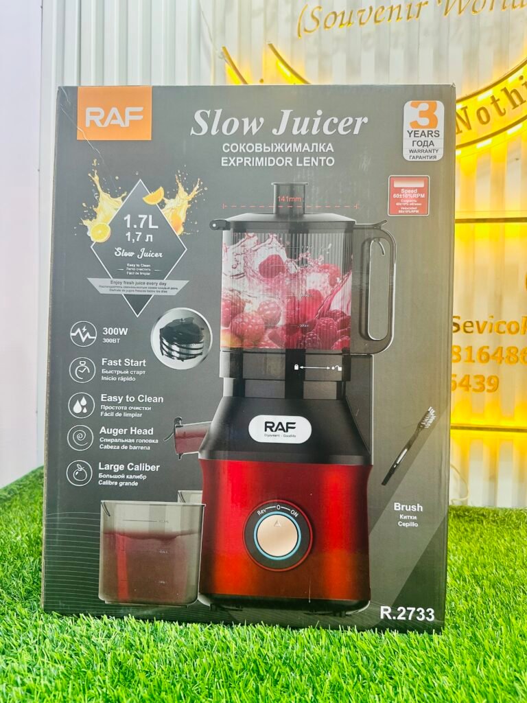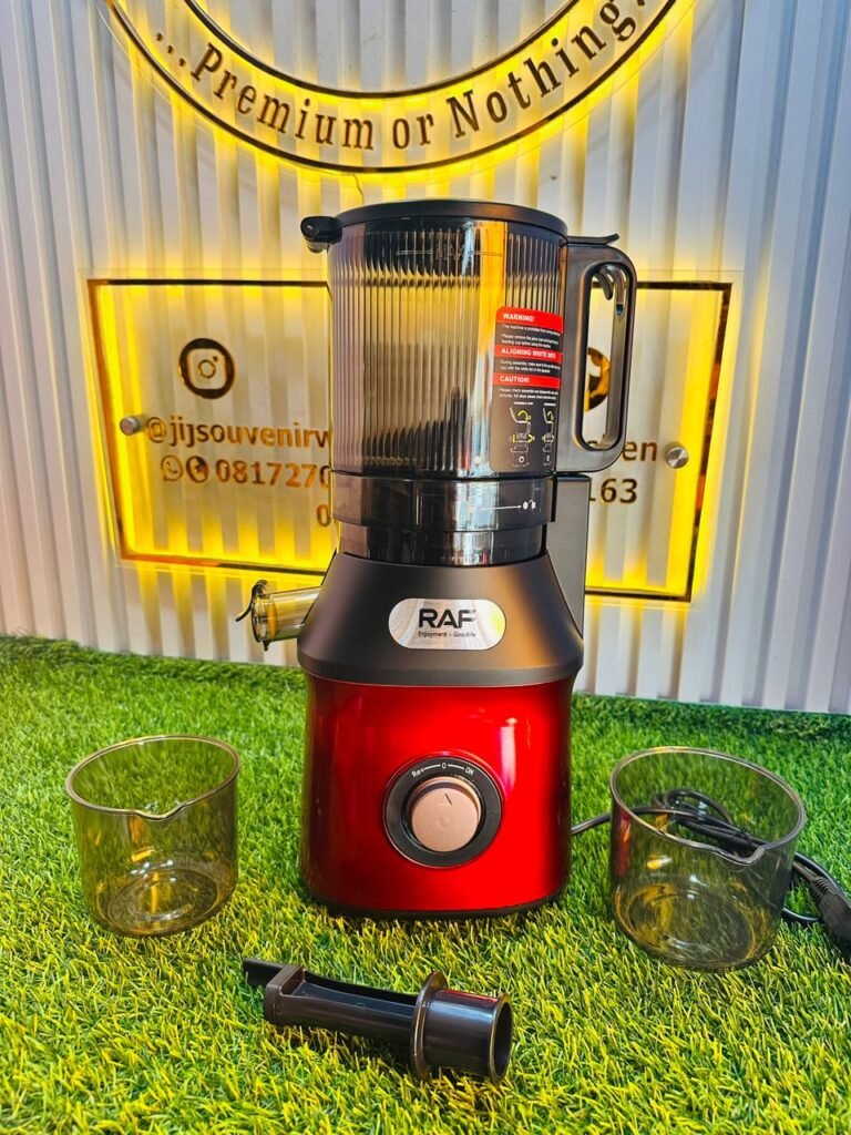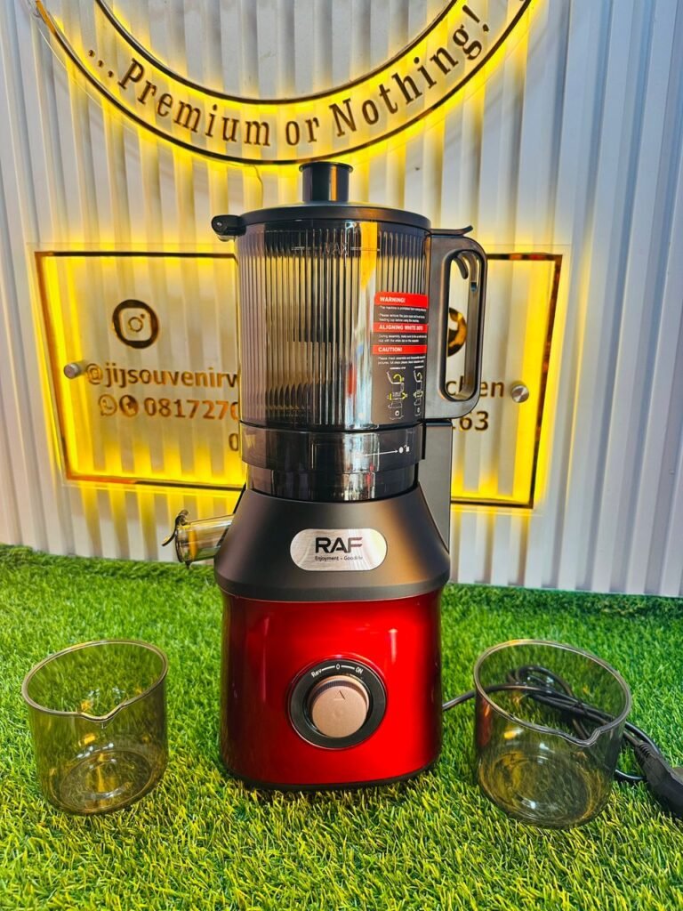 Slow Juicer with soft squeeze technology which produces 30% more juice than traditional juicing methods, providing maximum nutritional benefits. This juicer has non slip feet. It is easy to clean. It is also noiseless when in use. Enhance your healthy lifestyle and start your morning off with a nutritional boost with fresh juices and drinks made with your RAF slow-press juicer. With its slow extraction system, you’ll get the most out of the fruits and vegetables you choose.